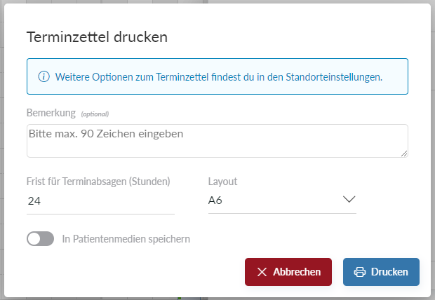 - Abgesagte Termine stehen nicht mehr auf dem Terminzettel