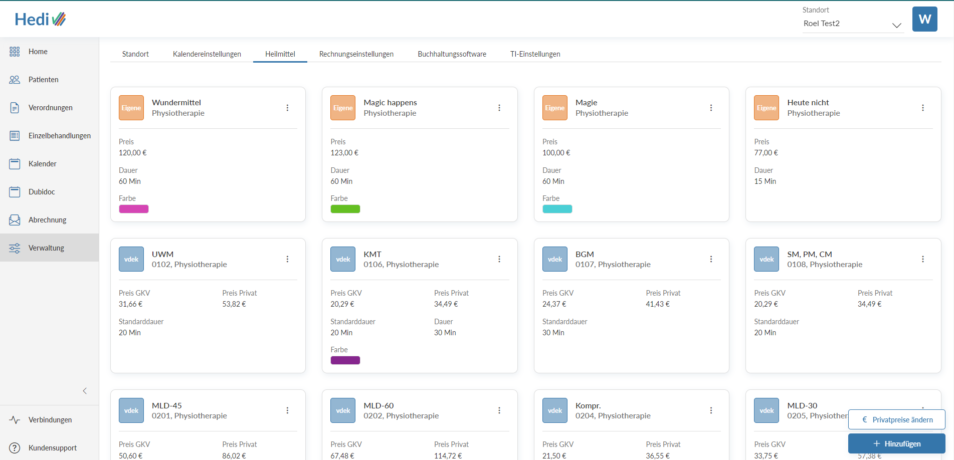 - Heilmitteleinstellungen für den Kalender eintragen: Dauer und Farbe individuell für deine Praxis und die Versicherungstypen definieren